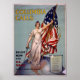 Une affiche de la Première Guerre Mondiale montrant Columbia tenant un drapeau et une épée en haut d'un globe créé par Vincent Aderente.