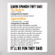 Affiche Apprenez l'espagnol Ce sera amusant Ils disent drô