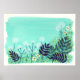 Impression d'affiche mat standard d'une aquarelle originale de Pip Gerard et peinture/illustration d'encre. Un doux arrière - plan d'eau/bleu turquoise avec les éléments illustrés et peints de Pip sur le dessus pour créer cette scène de nature rêveuse, sauvage, organique. Une oeuvre de maître abordable disponible en impression d'affiche - exclusive à Zazzle! Impression similaire en teintes/tonalités roses disponibles - Titre : Poster de peinture d'aquarelle d'artiste de terrain rose Sunset