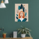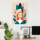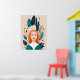 Aqua Orange Abstrait Boho Illustration AI Art Poster.