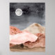 Affiche Aquarelle abstraite nuit lune paysage désertique