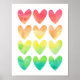 Rainbow watercolor coeurs enfants affiche imprimé est lumineux et amusant, il regarde dans une chambre pour enfants.
