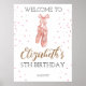 Poster de Ballerina Milestone Jote Girl Dancer Poster. Ce poster de bienvenue de ballerine Milestone est parfait pour les anniversaires et les fêtes de ballet. Bienvenue à votre famille et à vos amis avec cette carte de fête d'anniversaire personnalisable. Ce design présente des chaussures de pointe rose ballerine, des étoiles dorées et une typographie élégante. Peut être customisé pour répondre à vos besoins. Egalement disponible en mousse de bienvenue.