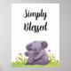 "Simply Blessed" cite les murs de Nursery, illustrant des aquarelles d'un ours Koala Mama et d'un bébé Koala, de l'herbe verte luxuriante et des fleurs violettes. Un joli et adorable ajout à tout décor de chambre de pépinière.