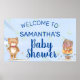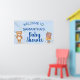 Célébrez l'arrivée de votre bébé en passant du temps avec vos amis et votre famille et bienvenue avec ce poster de bienvenue de baby shower d'ours en bois pour un bébé garçon. Un arrière - plan bleu doux avec des fleurs d'aquarelle accentue deux nounours d'aquarelle douce tenant une fleur. Un script tendance en bleu complète ce design animal forestier.