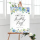 Bienvenue aux invités à votre événement avec ce signe de bienvenue personnalisable fête d'anniversaire. Il est doté d'hydrangées bleu aquarelle et d'anémones et roses rose et ivoire. Personnalisez ce panneau d'accueil fleuri en ajoutant les détails de votre événement. Ce panneau de fête d'anniversaire d'hydrangée est parfait pour les événements du printemps et de l'hiver.