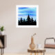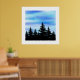 Affiche Aquarelle Ciel Bleu Violet et Silhouette d'Arbres