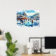 Affiche Aquarelle extérieure patinoire Station d'hiver