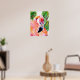 Aquarelle Flamant rose rose avec feuilles tropicales vertes