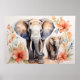 Affiche Aquarelle florale unique mère et enfant éléphant