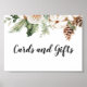 Affiche Aquarelle Hiver Pin vert Arbre et Fleurs blanches