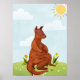 Affiche Aquarelle Jour Ensoleillé Adulte & bébé kangourou
