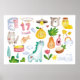 Affiche Aquarelle kawaii doodles isolés sur fond blanc