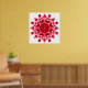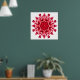 Poster de mandala aquarelle en rouge représentant un mandala floral abstrait comme une fleur créée à partir d'un dessin d'aquarelle de pétales roses.