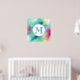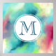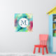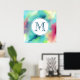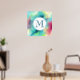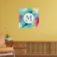 Une affiche avec un design abstrait cool et élégant. Les aquarelles se mélangent pour créer l'illusion d'une image spatiale. Vert avec des tourbillons de violet, jaune et rouge clair se mélangent avec un peu de points et d'étoiles blancs. Une élégante création artistique. Un cercle blanc superposé avec un premier monogramme à l'intérieur.