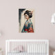 Affiche Aquarelle Peinture Belle Asiatique Fleurs Femme