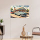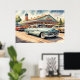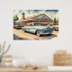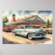 Affiche Aquarelle Peinture des voitures et des dîners