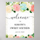 Affiche Aquarelle Pink Mint Fleurs Sweet 16 Bienvenue