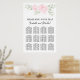 Belle carte de sièges fleuris rose vif pour un mariage. Deux grandes roses roses rousses paraissent belles contre un feuille vert sage. S'il vous plaît trouver votre siège est écrit dans une police simple et élégante. Les noms de mariée et de mariée sont écrits ci-dessous dans une police de caractères romantique. Il est très facile de modifier ces listes et les listes de tableaux ci-dessous.