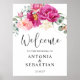 Affiche Aquarelle rose Fuchsia floral Mariage d'accueil