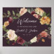 Bienvenue dans votre mariage avec notre affiche Rustic Bloom, avec la verdure botanique aquarelle et les fleurs aux riches couleurs d'automne, avec "bienvenue à notre heureux toujours après", vos noms, et rendez-vous mariage dans un mélange chic de typographie serif et calligraphie traditionnelle.