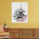 Affiche Aquarelle Sakura Blossom Bambou Temple japonais
