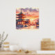 Affiche Aquarelle Temple japonais traditionnel au coucher