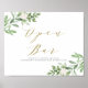Aquarelle Vert et Fleurs blanches Panneau à barre ouverte | Elégant signe de mariage avec des illustrations aquarelle et motif de feuillage et de fleurs blanches. Cette enseigne de bar verdoyante sera parfaite pour les mariages printaniers, les baby showers et bien plus encore.