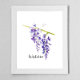 Joli style botanique aquarelle peinture de la glycine violette pendante en pleine floraison, avec texte sur arrière - plan blanc
