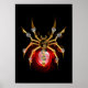 Araignée mécanique à vapeur avec or, engrenages en laiton et lampe en verre rouge sur un arrière - plan noir. Style Steampunk.