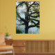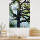 Une belle affiche d'un arbre mousseux dans le brouillard.