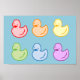 Un design rétro, mignon et cuisinier, présente de petits canards aux couleurs arc-en-ciel.