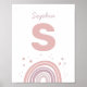 Affiche Arc-en-ciel mignon rose et violet. Monogramme du n