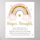 Cette adorable Diaper Thoughts Game est une excellente façon de commencer à s'amuser à votre Baby shower et garanti d'être un grand succès! Il suffit d'afficher ce joli panneau avec une pile de couches et de marqueurs Sharpie. Chaque invité écrira un message sur la couche, il peut être quelque chose d'amusant ou des mots de conseil pour les parents à lire pendant qu'ils changent la couche de bébé. Le design présente notre arc-en-ciel dessiné à la main et des nuages dans des tons neutres de la terre avec des étoiles de parties scintillant en faux or.