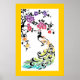 Affiche Arc-en-ciel, paon noir et fleurs de cerisiers