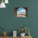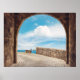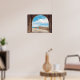 Poster est montré avec une photo d'une belle scène d'arc de pierre avec des oiseaux de mer. Customisez cet objet ou achetez tel quel. Image stock