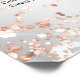 Un banc pour un mariage. Un arrière - plan élégant à l'allure fausse argent décoré de confettis rose en or. Personnalisez et ajoutez le nom de la mariée et du marié, ajoutez vos noms d'invités.