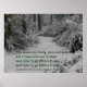 Poster présente une photo d'un chemin à travers une forêt enneigée et une citation de Robert Frost : "Les bois sont beaux, sombres et profonds...."