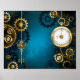 Arrière - plan turquoise, texturé, steampunk avec des engrenages en laiton et or, une clé en argent et l'horloge. Style Steampunk.