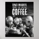 Même les envahisseurs spatiaux ont besoin d'un coup de pouce à la caféine ! Cette photo vintage en noir et blanc capture un groupe de quatre êtres extraterrestres dans des combinaisons spatiales qui prennent une pause café dans un café.