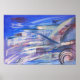 Affiche Art Abstrait bleu rose et gris