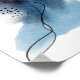 Une illustration d'art abstrait moderne et contemporain qui présente une éclaboussure d'encre aquarelle dans des nuances de bleu avec des éclaboussures de peinture en bleu et noir et deux lignes ondulées noires. Un dessin simple mais élégant.