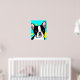 Illustration de portrait de Boston Terrier sur fond aqua avec des cercles jaunes pour égayer les murs de la chambre de tout amoureux des chiens, ou la salle de jeu des enfants
