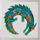 Cet art d'alligator tribal coloré ressemble un peu à un dragon ancien. Le motif primitif vert, bleu et orange avec des traits peints à la main rugueux est ludique, dynamique, et encore artistique et complexe. C'est une pièce moderne qui semble faire partie d'une culture ancienne ou d'un art primitif. Inspiré par l'art du peuple timorais de Floride où l'art alligator est souvent utilisé pour représenter la force, le courage et la férocité. C'est un design féroce !