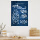 Wake Surfing Patent Art Imprimer no 2 avec arrière - plan bleu.