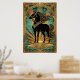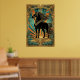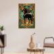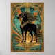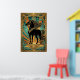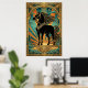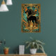 Affiche Art Deco Black Horse Statue Sunburst Teal Gold