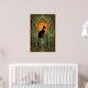 Set within a grand teal cathedral frame, a regal black cat sits beneath a glowing orange celestial orb. The soft gradient and symmetrical arches evoke a sense of peaceful grandeur, making it a calming yet opulent centerpiece for any sophisticated space.