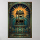 Affiche Art Deco Cinema Popcorn Machine Gold & Teal