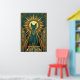 This playful art deco black cat climbs a stylized teal curtain with golden motion trails trailing behind. The geometric curtain folds and dynamic upward composition capture 1920s energy perfect for kitchens, hallways and creative spaces.