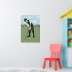 un golf art de style vintage avec un golfeur sur le point de balancer de son club de golf, habillé vintage, sur un terrain de golf avec des montagnes en arrière - plan. Idéal pour le père golfeur ou golfeur amateur.
